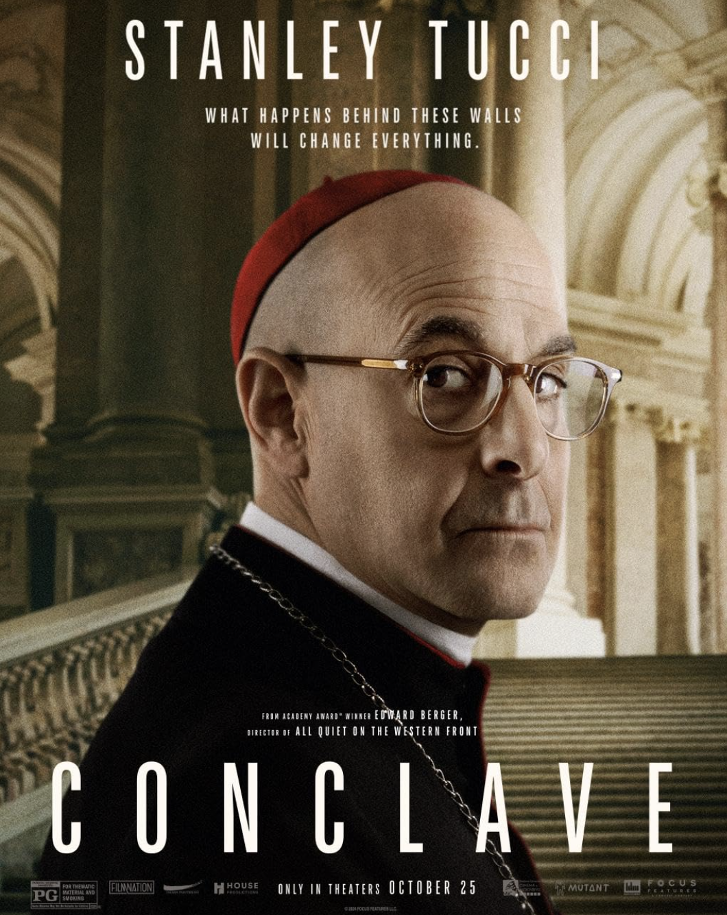전 개인적으로 앨도 벌리니 추기경 역할을 맡아 연기한 스탠리 투치Stanley Tucci 팬입니다. 매년 적어도 한 편의 영화를 찍은 스탠리 투치의 필모를 보면 스포트라이트, 킹스맨, 헝거게임, 마진 콜, 줄리앤줄리아, 터미널, 악마는 프라다를 입는다, 트랜스 포머, 칠드런 액트 등 정말 좋은 작품들이 많습니다.